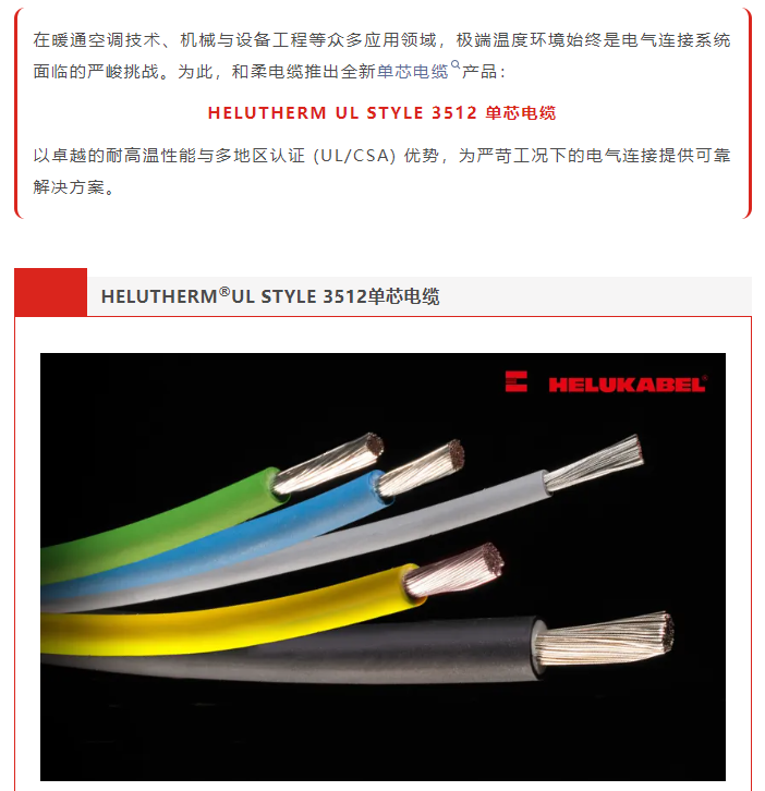 耐高温 + 双认证!和柔HELUTHERM UL 3512 单芯电缆全新上市